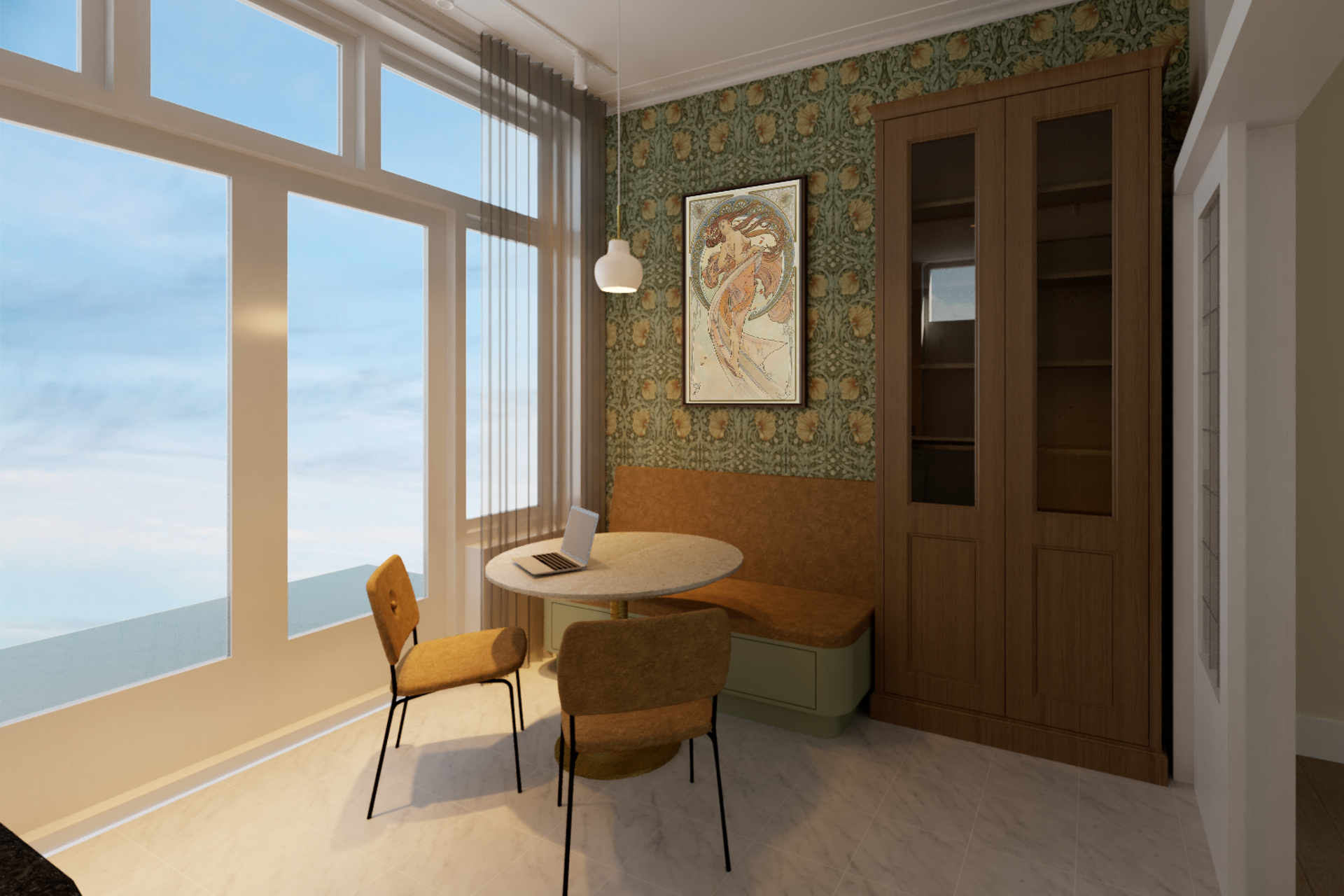 Geen interieur van een huis, maar interieurontwerpen van een bedrijfsruimte
